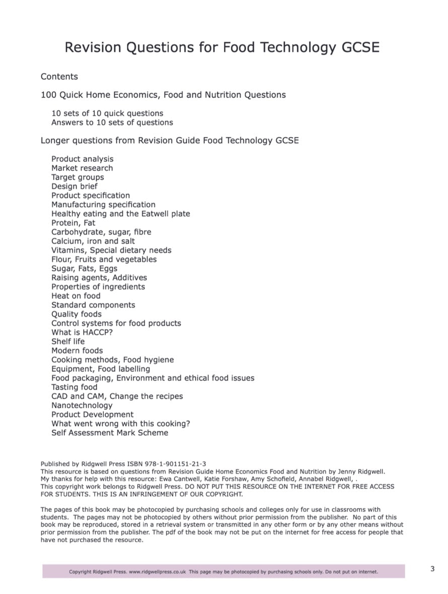 Another very popular book in the series for Food and Nutrition GCSE. The questions with answers cover all the GCSE specifications and provide 100 multichoice questions and some longer exam questions.
