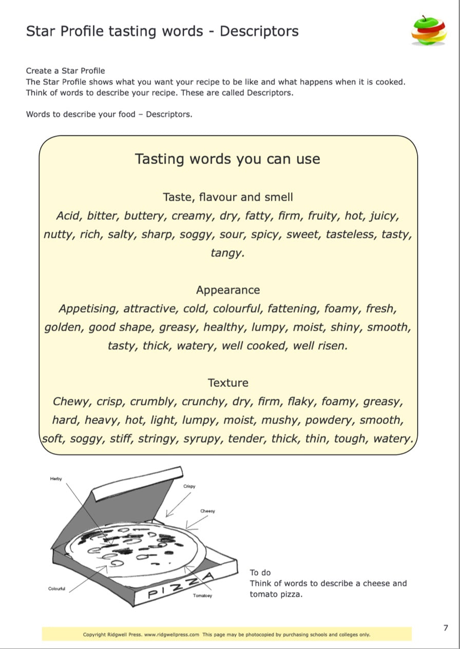 There are recipes with methods, then descriptors to help with tasting. Matches exam board specifications.